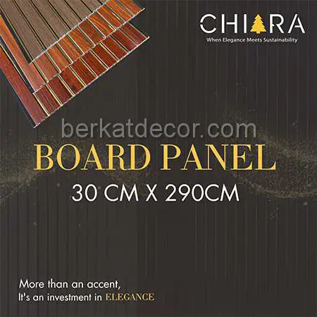 Perlu Anda ketahui bahwa Chiara Board Panel kuat hingga lebih dari 10 tahun, Tetapi untuk perawatannya relatif sangat mudah. Asalkan sisa barang Anda simpan, dengan sisa barang itu kerusakan akan dapat diperbaiki dengan mudah. Jangan ragu ragu lagi, segera percantik ruangan Anda karena kami punya beragam model produk untuk Anda pasang di Rumah atau Kantor Anda.